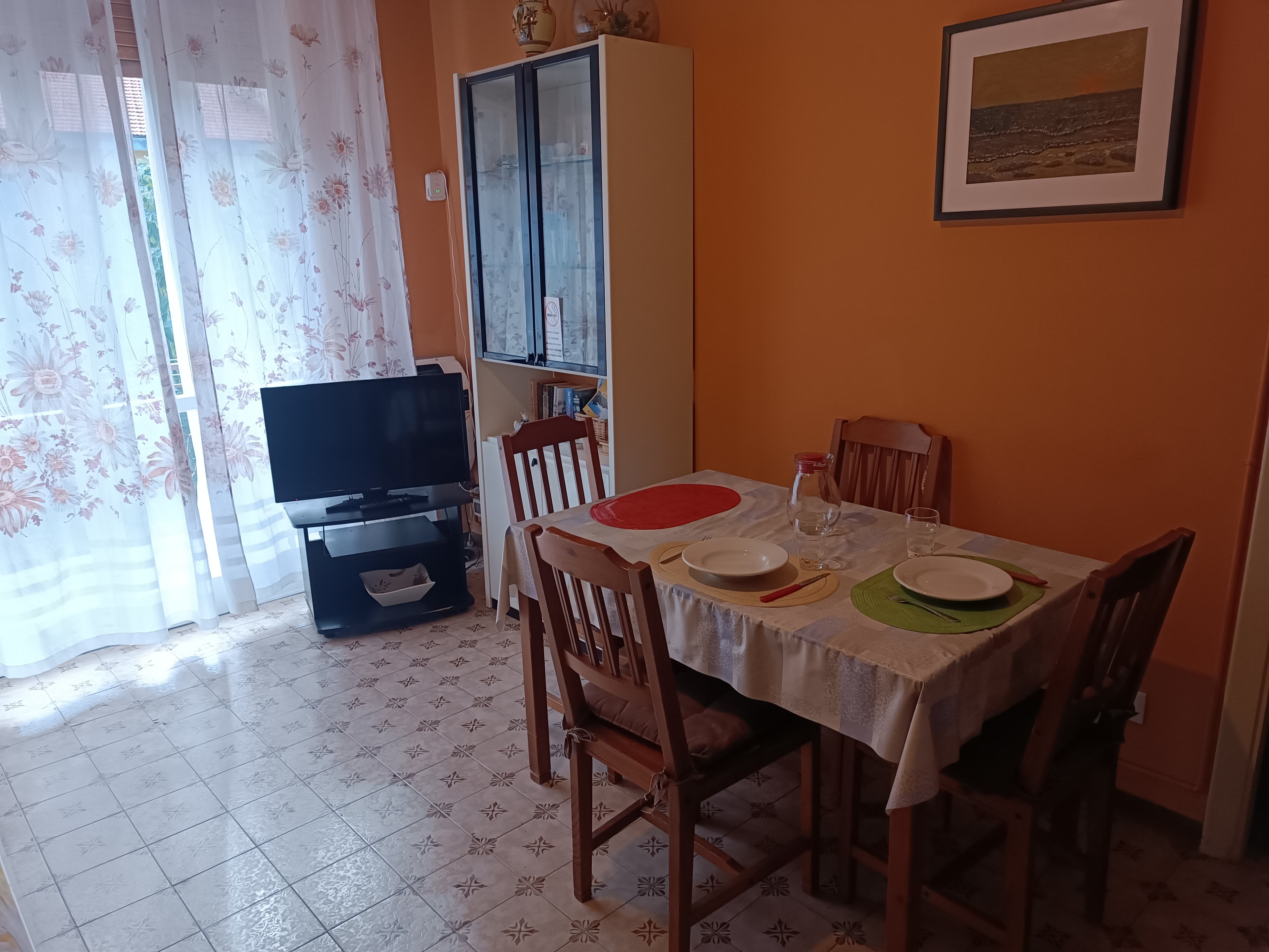L’appartamento ha 5 posti letto suddivisi in ampia camera con letto matrimoniale e letto singolo ed ulteriore lettino per neonati ed un soggiorno abitabile con due letti singoli che possono diventare un letto matrimoniale, un bagno con lavatrice e un balcone con vista aperta e molto ventilato.